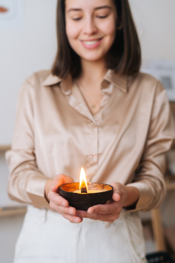 On a practical level, a lit candle contributes to a cosy and tranquil atmosphere. Its softly glowing light calms our nerves and helps us to relax and release tension.