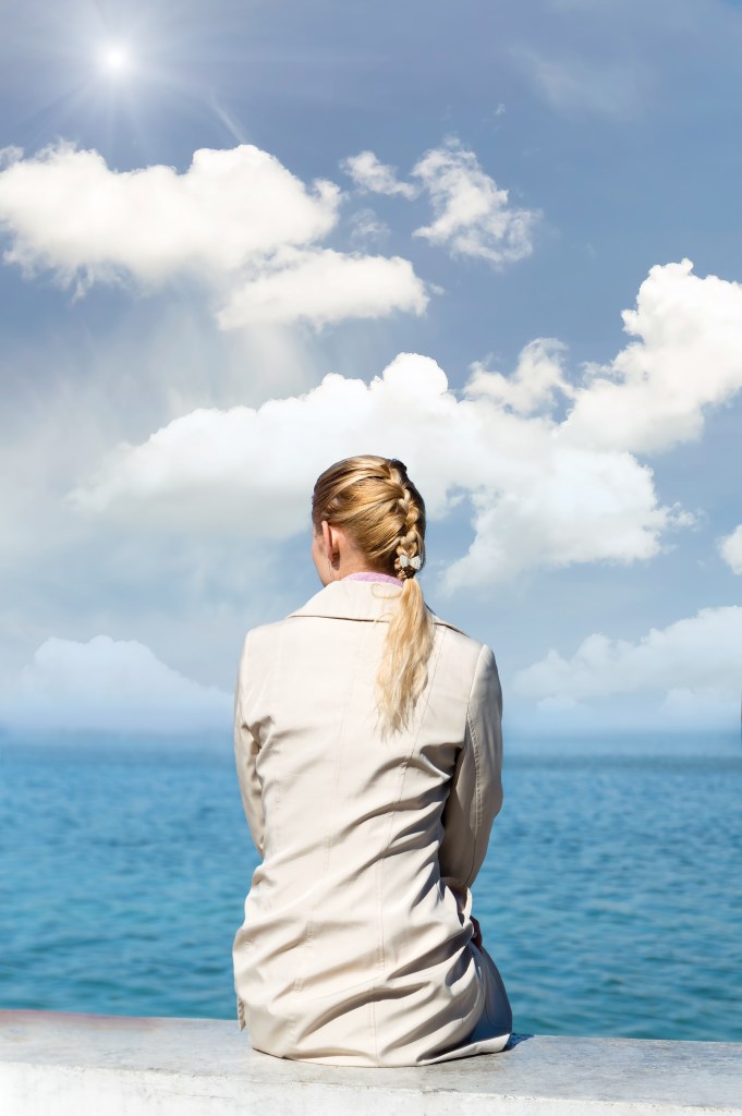 White, puffy clouds radiate an energy of friendliness, lightness, positivity, and serenity, whereas darker clouds looming on the horizon represent heavy-heartedness, worry, and despair.